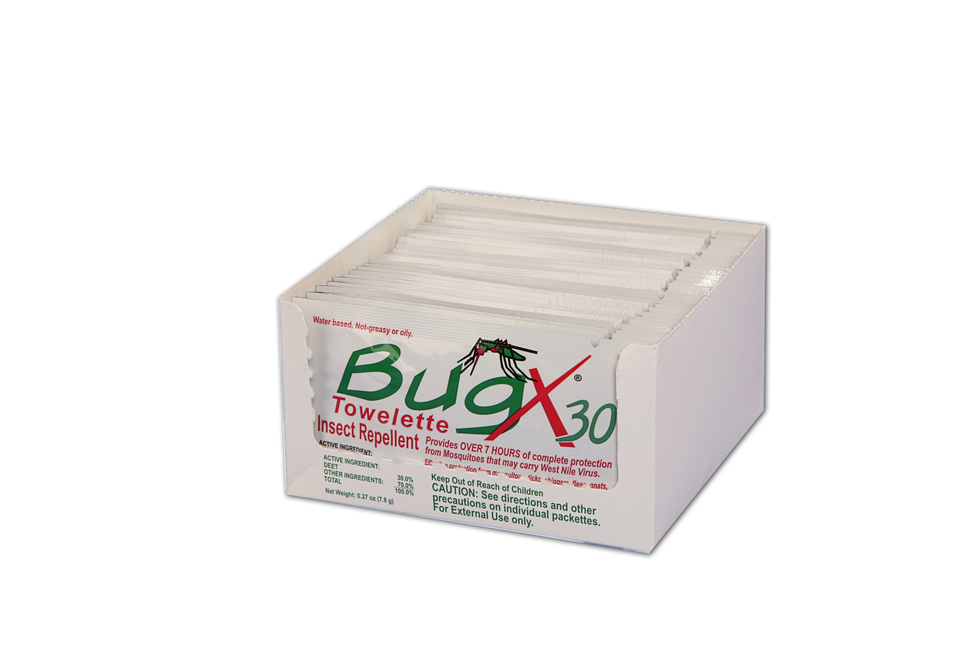BugX 30 Insect Repellent Towelettes offer powerful, long-lasting protection against biting insects in a convenient, single-use format. Each towelette is saturated with 30% DEET, providing up to 7 hours of defense against mosquitoes, ticks, fleas, gnats, chiggers, and flies—many of which may carry diseases like West Nile Virus, Lyme Disease, Zika, and more.