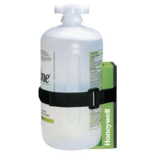 Honeywell Fendall Eye saline Universal Personal Eyewash Bottle Mounting Bracket features an expandable strap with a magnetic adhesive backing that helps to hold various personal eyewash bottle sizes up to 32 ounce.