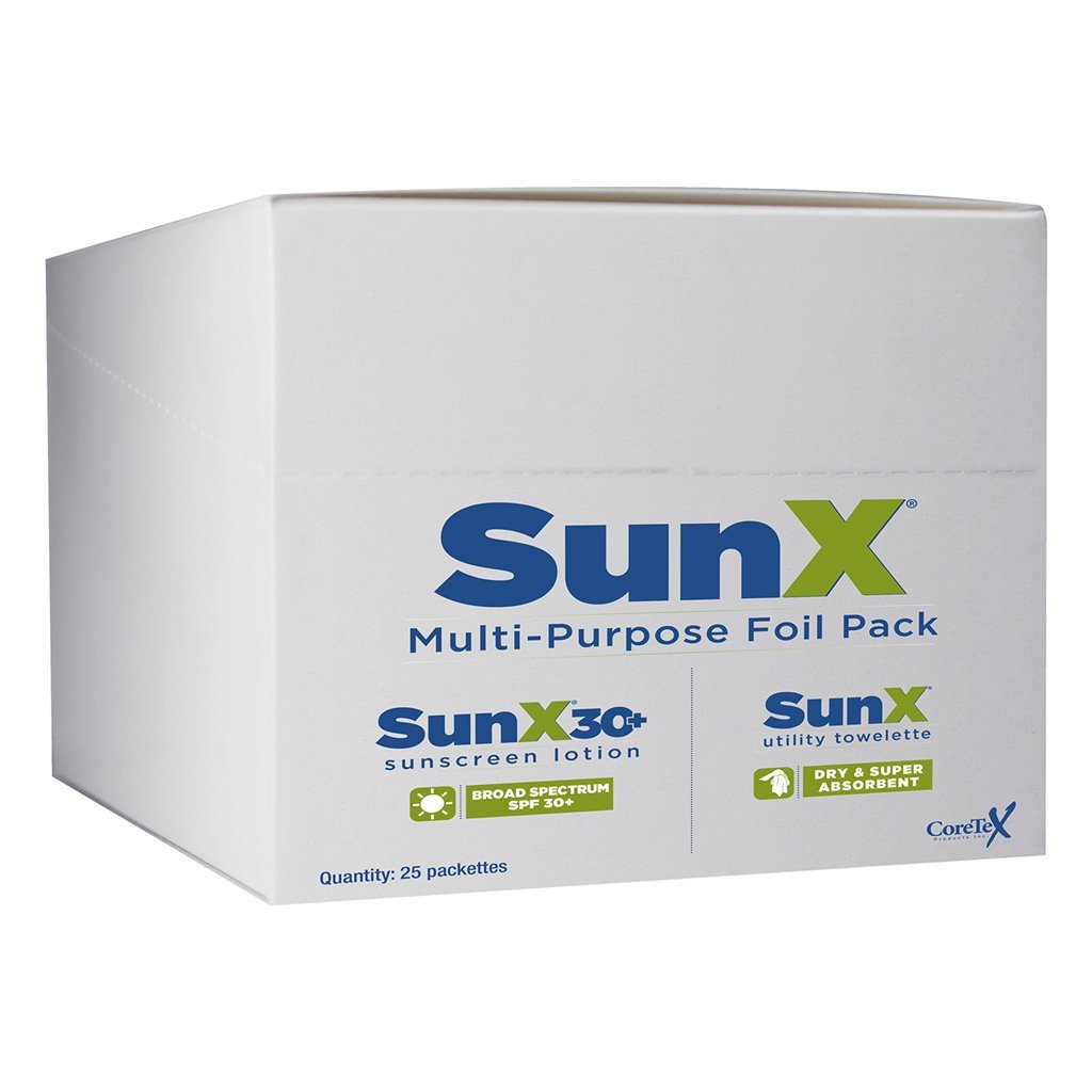 SunX SPF30 Sunscreen Lotion Foil Packs with Towelette – 25/Box | Broad Spectrum, Water-Resistant Protection